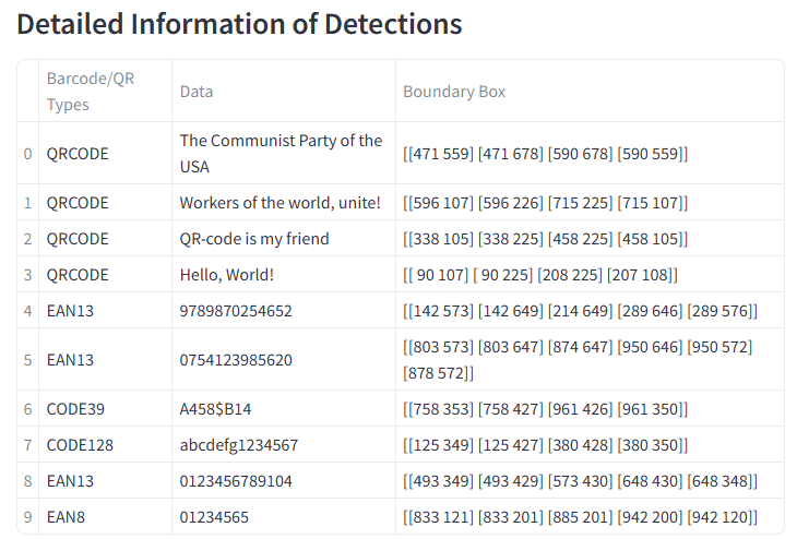 You can test its accuracy on cluttered images, rotated QR codes, or product labels, and watch as it quickly detects and decodes them.