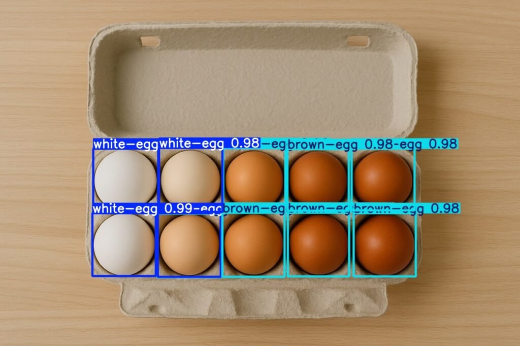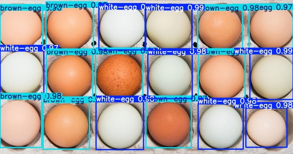 - Confidence scores indicating the likelihood that a detected object is indeed an egg.