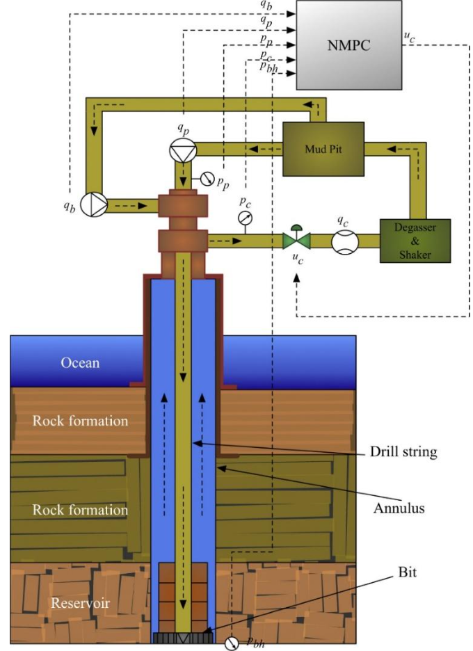 In MPD systems, a choke valve, along with mud pumps and other actuators, adjusts the backpressure on the wellbore. Optimal regulation of this choke opening, in coordination with pump flow, can significantly improve operational safety and efficiency, but requires a control strategy capable of anticipating system dynamics and managing constraints in real time.